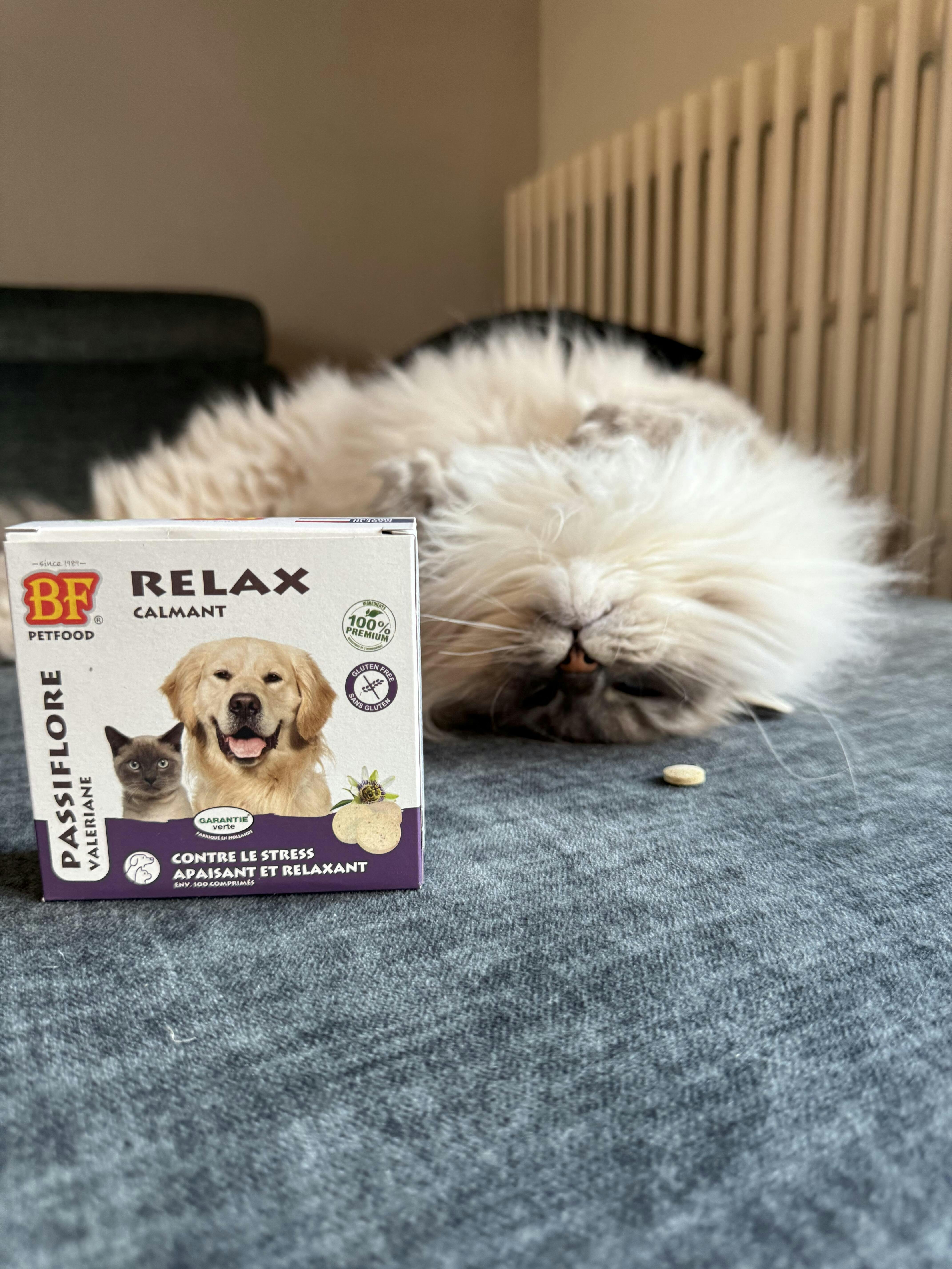 Consiente a tu fiel compañero con unapaciguamientoUn merecido descanso con las tabletas Relax de BF Petfood. Especialmente formuladas con suero de leche, arroz y levadura de cerveza.de valeriana, de pasifloraEstas tabletas proporcionan unaefecto calmante y relajanteEn caso de fuegos artificiales, tormentas, estrés o durante la socialización, las tabletas Relax pueden ayudarle a usted y a su amigo peludo a despedirse del estrés y la ansiedad.