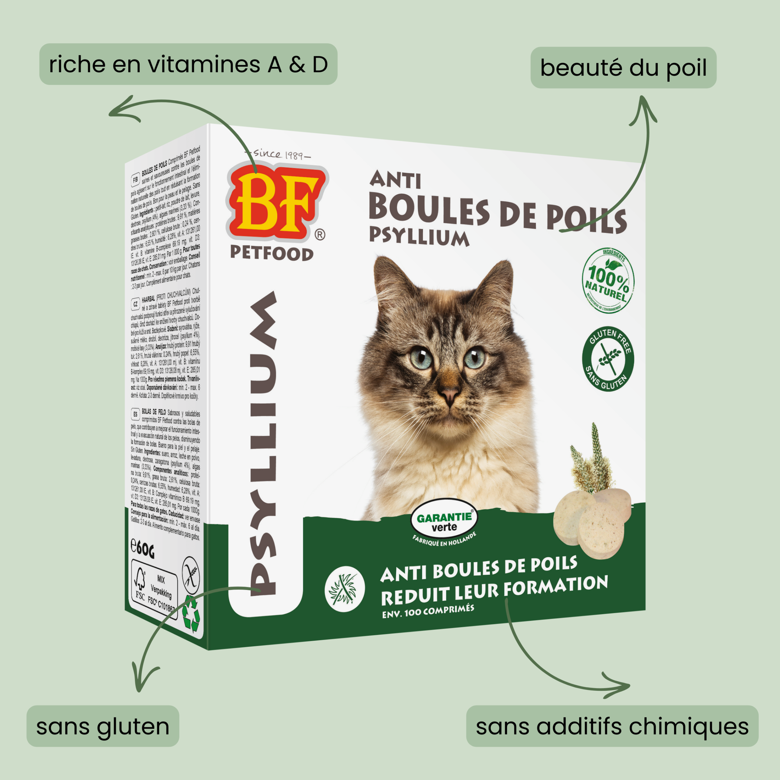 A diferencia de la mayoría de los suplementos dietéticos para la belleza del pelaje, las tabletas para bolas de pelo de BF Petfood no solo contribuyen a un pelaje brillante y sedoso, sino que también ayudan a limitar la formación de bolas de pelo, ¡para un gato en óptimas condiciones!