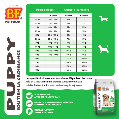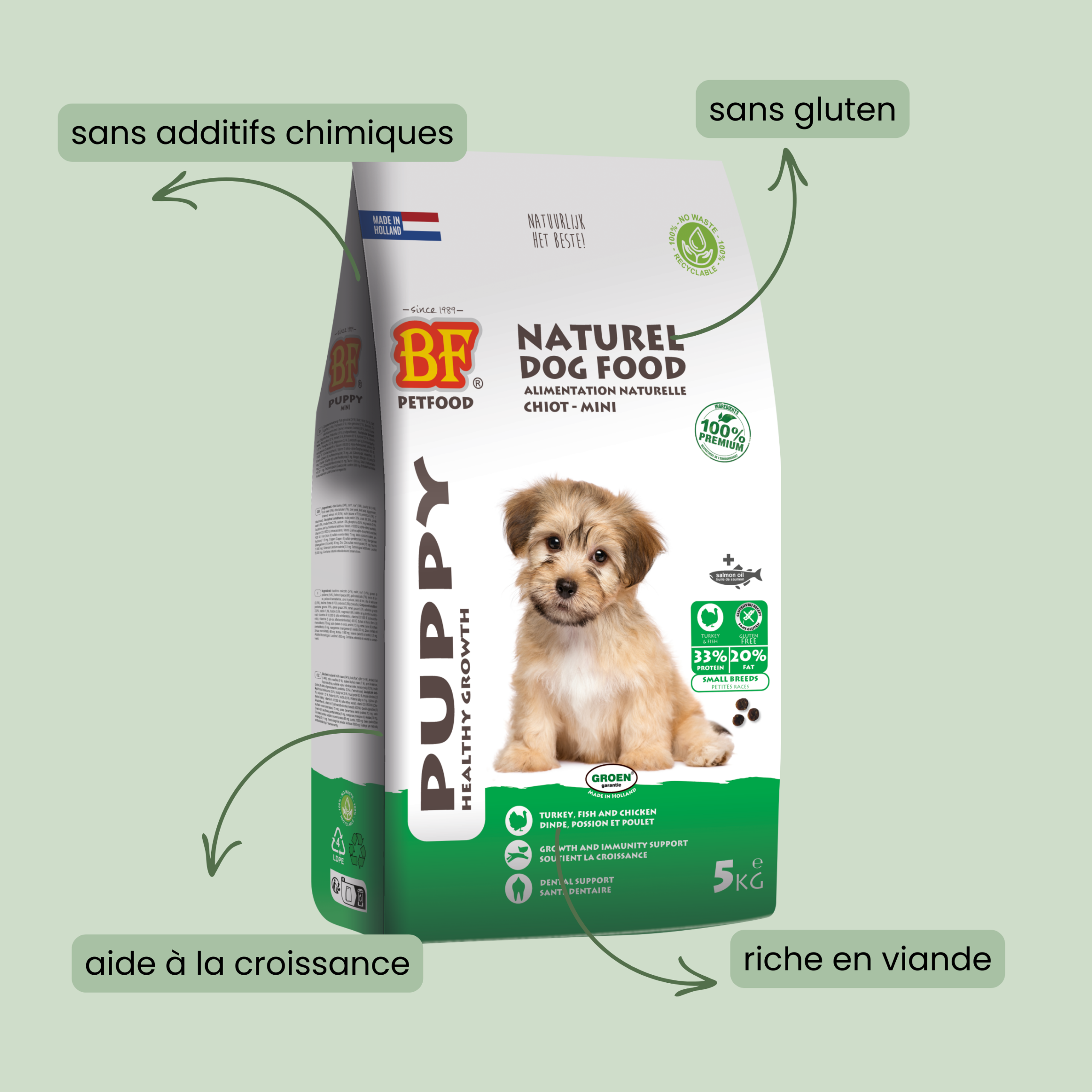 El alimento seco para cachorros, como BF Petfood Puppy Mini, está especialmente formulado para favorecer su rápido crecimiento . Suele contener un mayor contenido proteico para el desarrollo muscular , así como nutrientes esenciales como calcio y fósforo para fortalecer huesos y dientes . La mayoría de las fórmulas también están enriquecidas con ácidos grasos omega-3 (por ejemplo, con aceite de salmón) para favorecer el desarrollo cerebral y una buena visión .