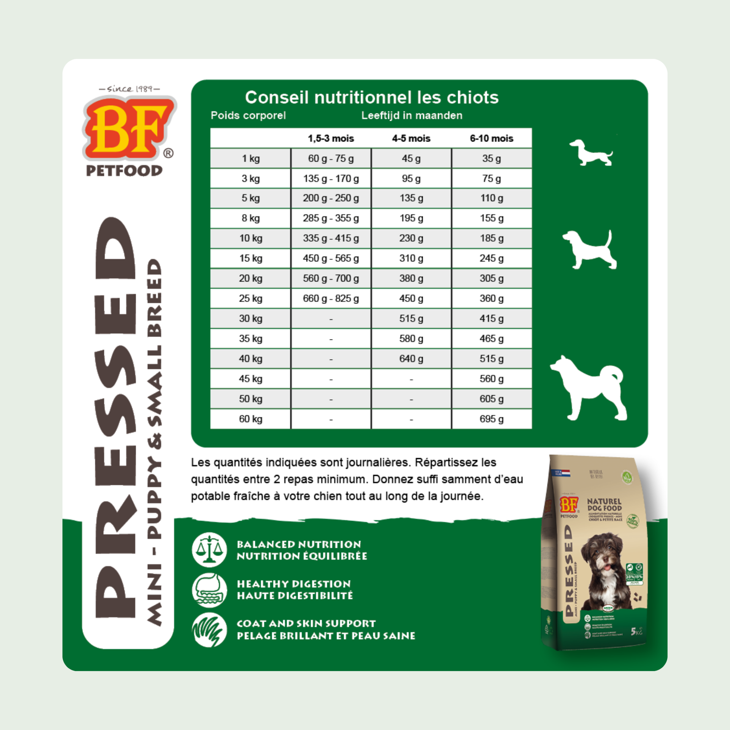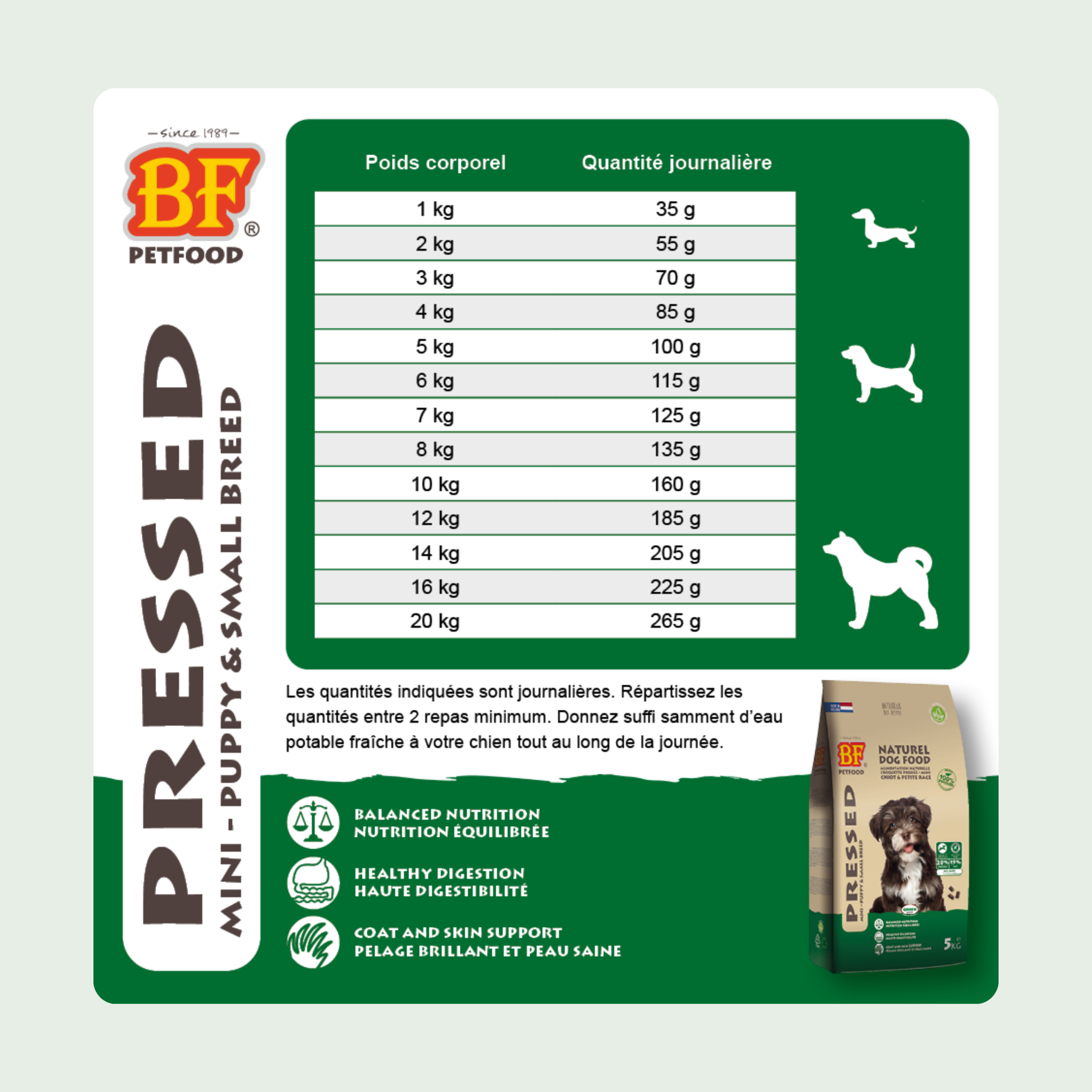 Al elegir BF®Petfood Pressed Mini, está eligiendo un alimento que cubre de forma ideal las necesidades nutricionales de su perro y preserva su salud.