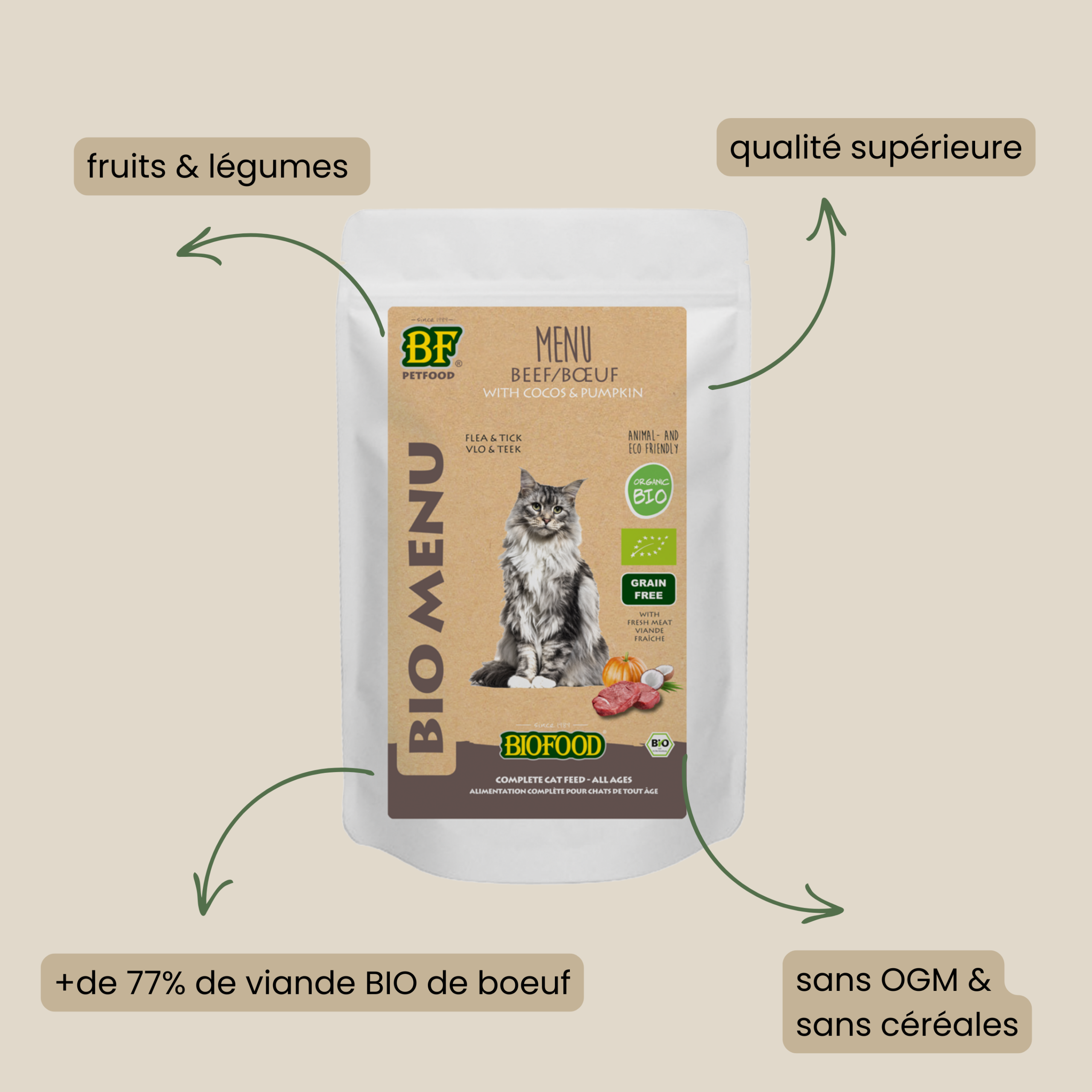 Con el menú de carne orgánica de BF Petfood, le ofreces a tu gato una terrina de alta calidad, deliciosa y producida de forma responsable. ¡Tu compañero felino se merece lo mejor!
