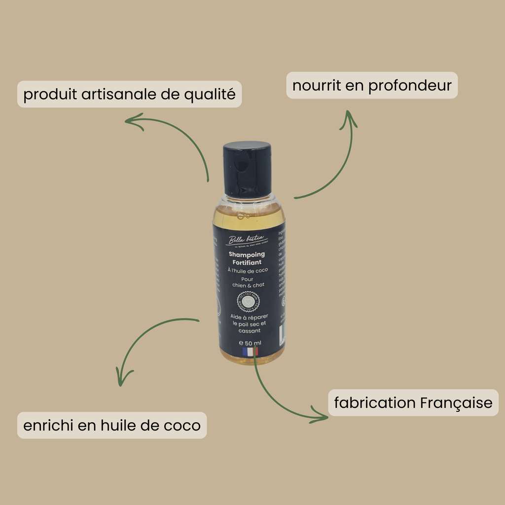 Si tu perro tiene el pelaje seco y quebradizo, nuestro champú de coco es la solución perfecta. Gracias a sus propiedades hidratantes y reparadoras, devolverá a su pelaje un brillo suave, sedoso y saludable.