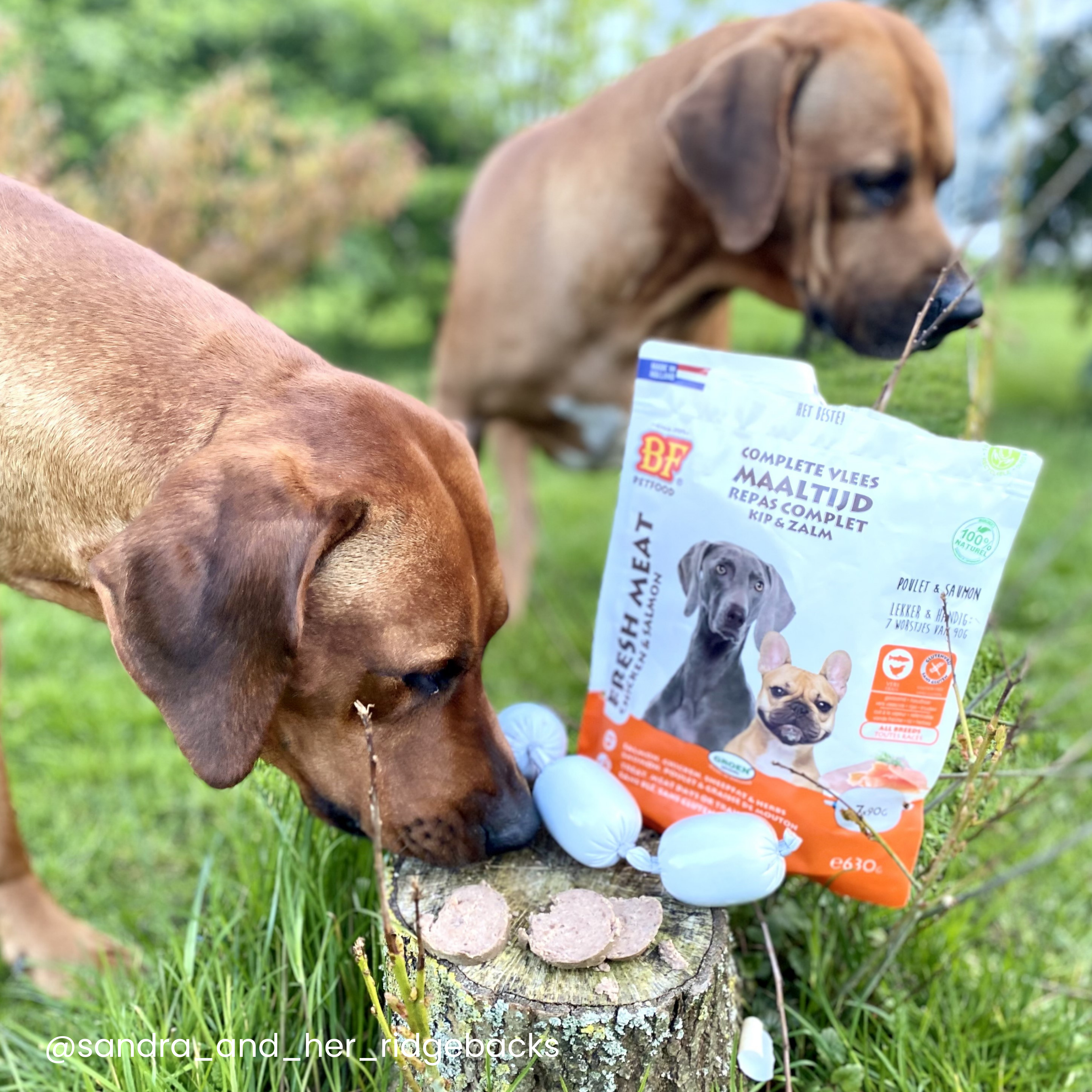 Si vous avez un grand chien (+15kg) qui boude un peu ses croquettes pour chien ou qui manque de motivation pour ses séances d’éducation canine, n’hésitez pas à sortir votre arme secrète : des morceaux de saucisses BF Petfood fraîchement découpées.
