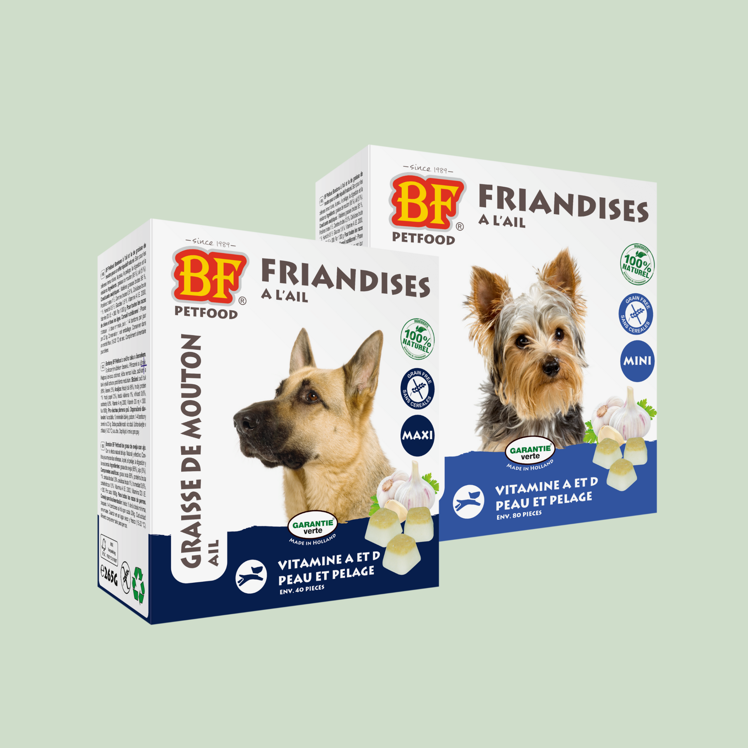 Avec BF Petfood, optez pour une solution naturelle et responsable. Offrez à votre chien une protection efficace tout en respectant l’environnement. Faites le choix du bien-être, pour lui et pour la planète, avec nos bonbons savoureux et sûrs !