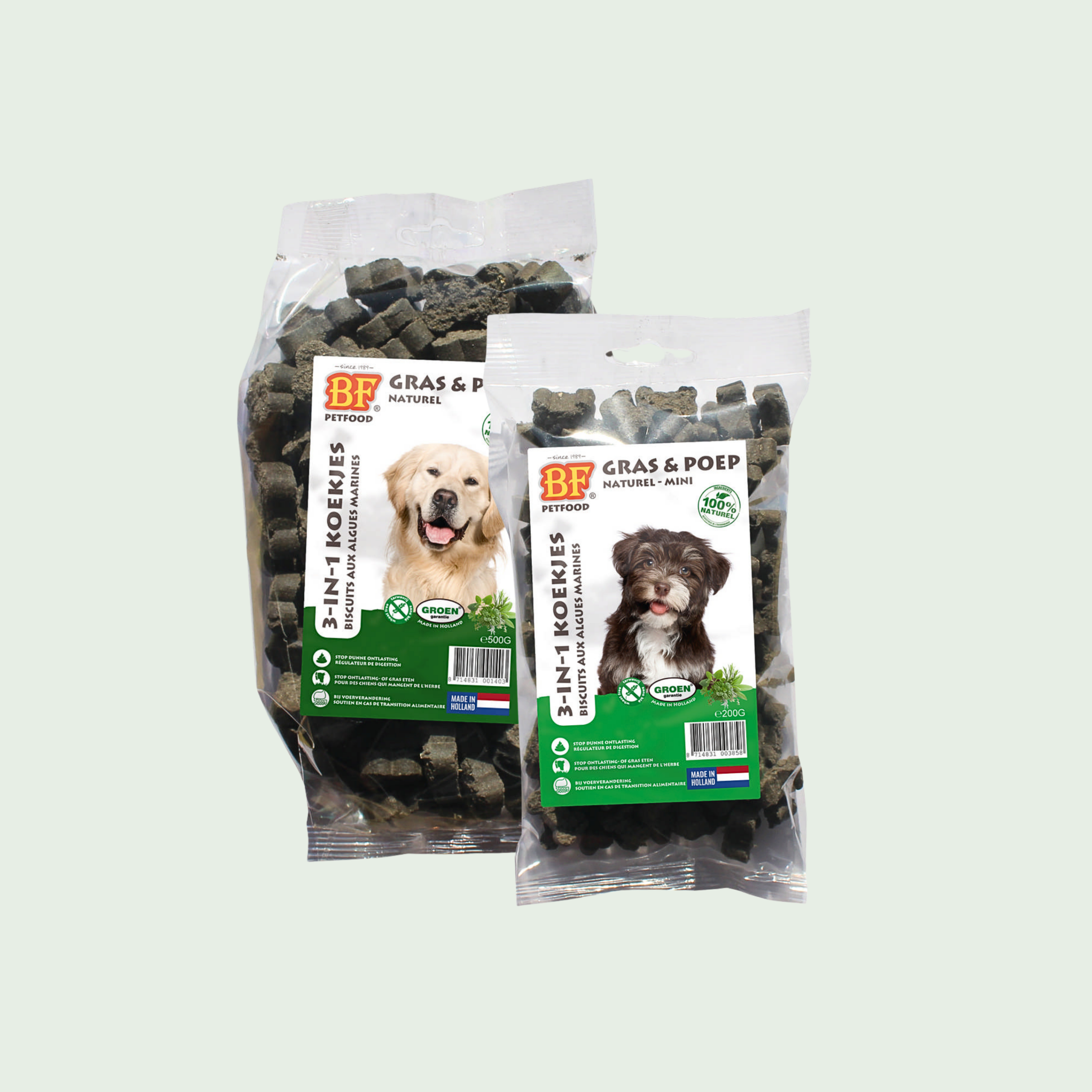 Bonne nouvelle, TOUS les chiens peuvent profiter de cette gourmandise aux algues marines ! Que votre toutou soit petit ou grand, qu’il s’agisse d’un chiot, d’un chien adulte ou d’un senior, les biscuits aux algues seront parfaits pour lui.