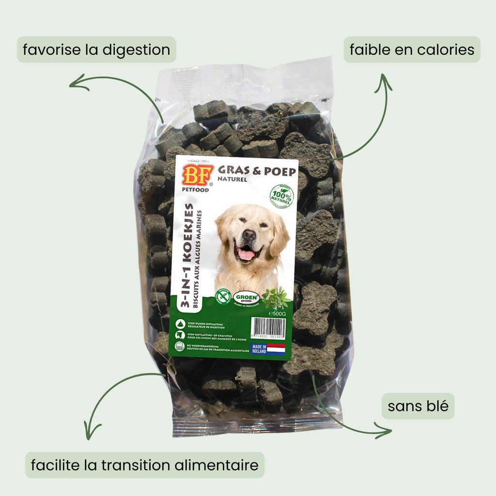 Vous vous demandez peut-être pourquoi choisir les friandises aux algues BF Petfood et pas une autre alternative ? La réponse est toute simple : en offrant un de ces biscuits, vous alliez plaisir et santé pour votre compagnon. Plaisir, car ces gourmandises sont très savoureuses et appétissantes, et santé, car elles sont saines et qu’elles agissent bénéfiquement sur la santé de votre animal de compagnie. Cependant, vous pouvez toujours compléter avec d’autres friandises : les lamelles de viande, les friandises croustillantes ou les autres biscuits. Alterner les saveurs est une bonne idée pour maintenir l’intérêt de votre compagnon à quatre pattes !