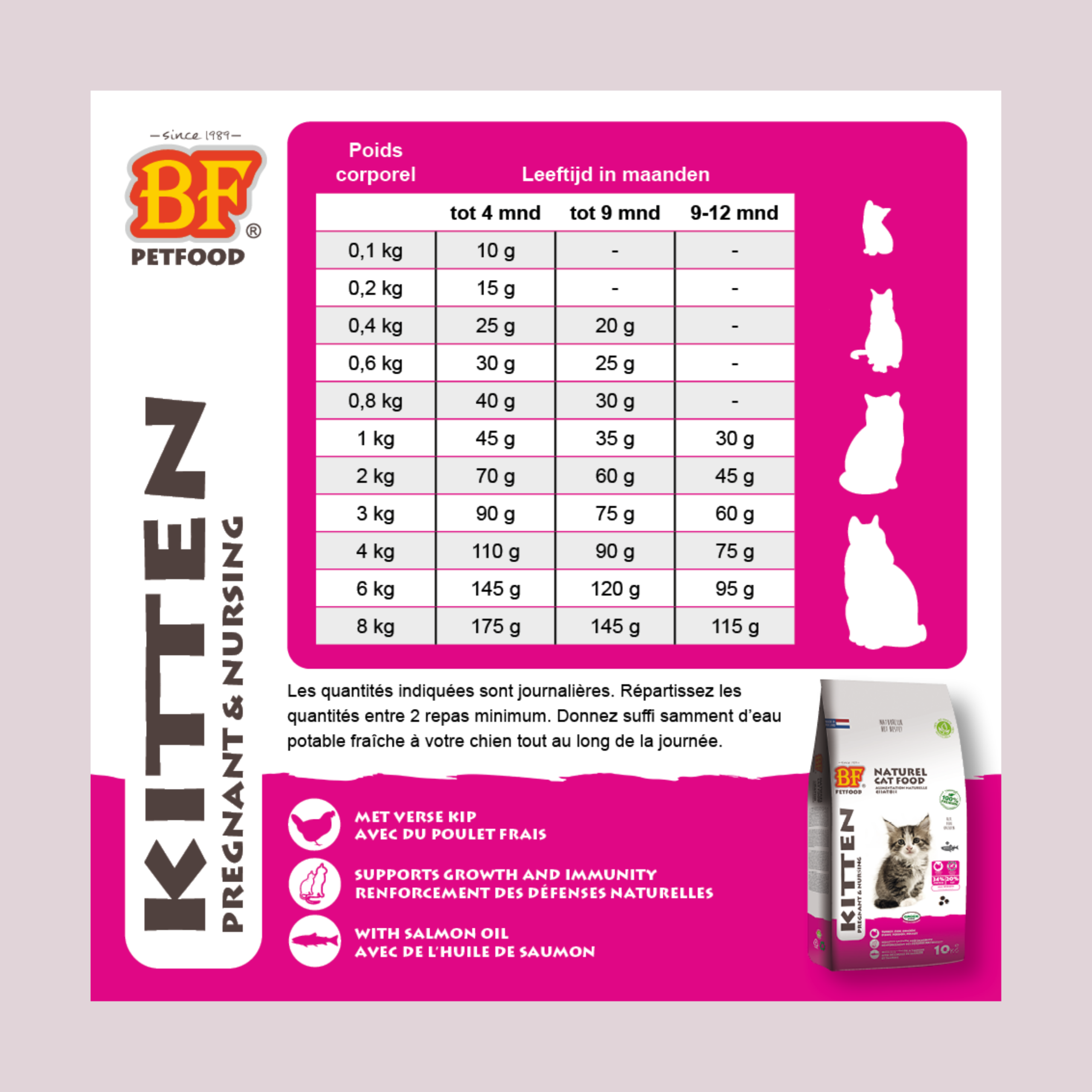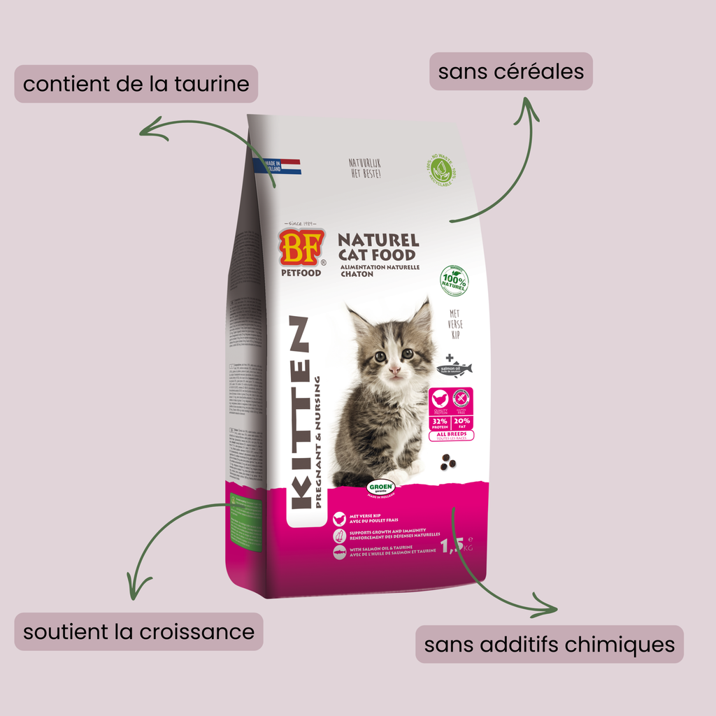 Offrez à votre petit félin le meilleur départ dans la vie avec les croquettes BF Petfood Kitten. Spécialement étudiées pour les chatons jusqu'à 12 mois. Composées uniquement d’ingrédients d'origine naturelle, ces croquettes vous offrent une qualité sans égale.