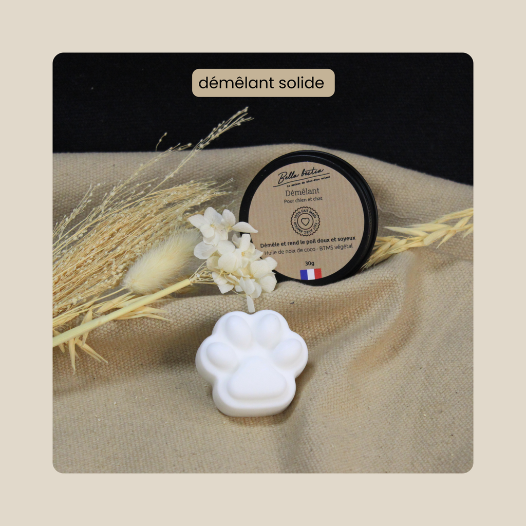 démêler les poils de chat et de chien facilement, tout en respectant votre animal et la planète. Vous n'avez plus à choisir entre efficacité et respect de l'environnement, notre démêlant solide naturel vous offre les deux !