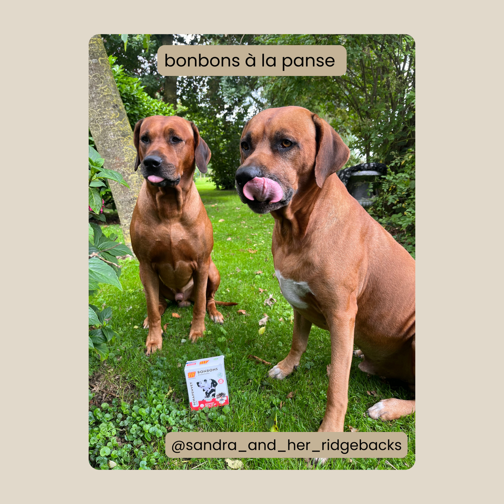 Et comme la santé d’un chien se voit aussi à l’extérieur, les bonbons à la panse contribuent aussi à la beauté de la peau et du pelage !