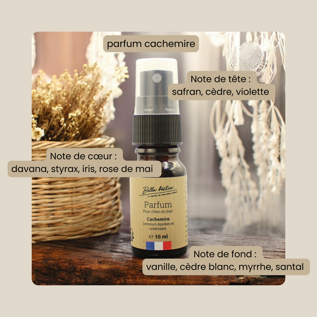 parfum de chat et chien Bella Bestia est fabriqué à base d’ingrédients d’origine naturelle et parfume votre compagnon en douceur pour des câlins encore plus agréables !