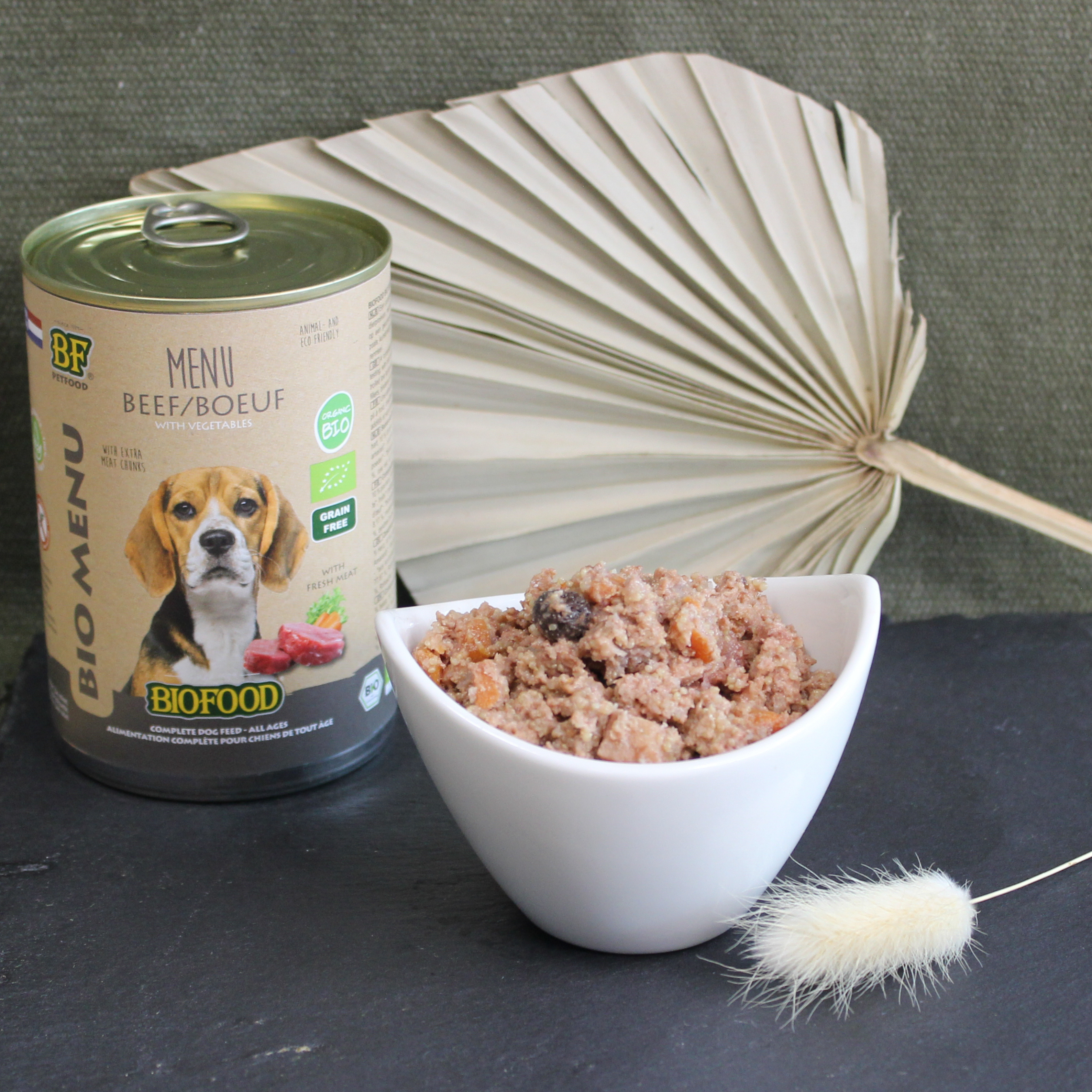Avec le menu bio au bœuf BF Petfood, vous avez la certitude de choisir une pâtée de haute qualité, délicieuse, et produite de manière responsable. Votre compagnon canin mérite le meilleur !