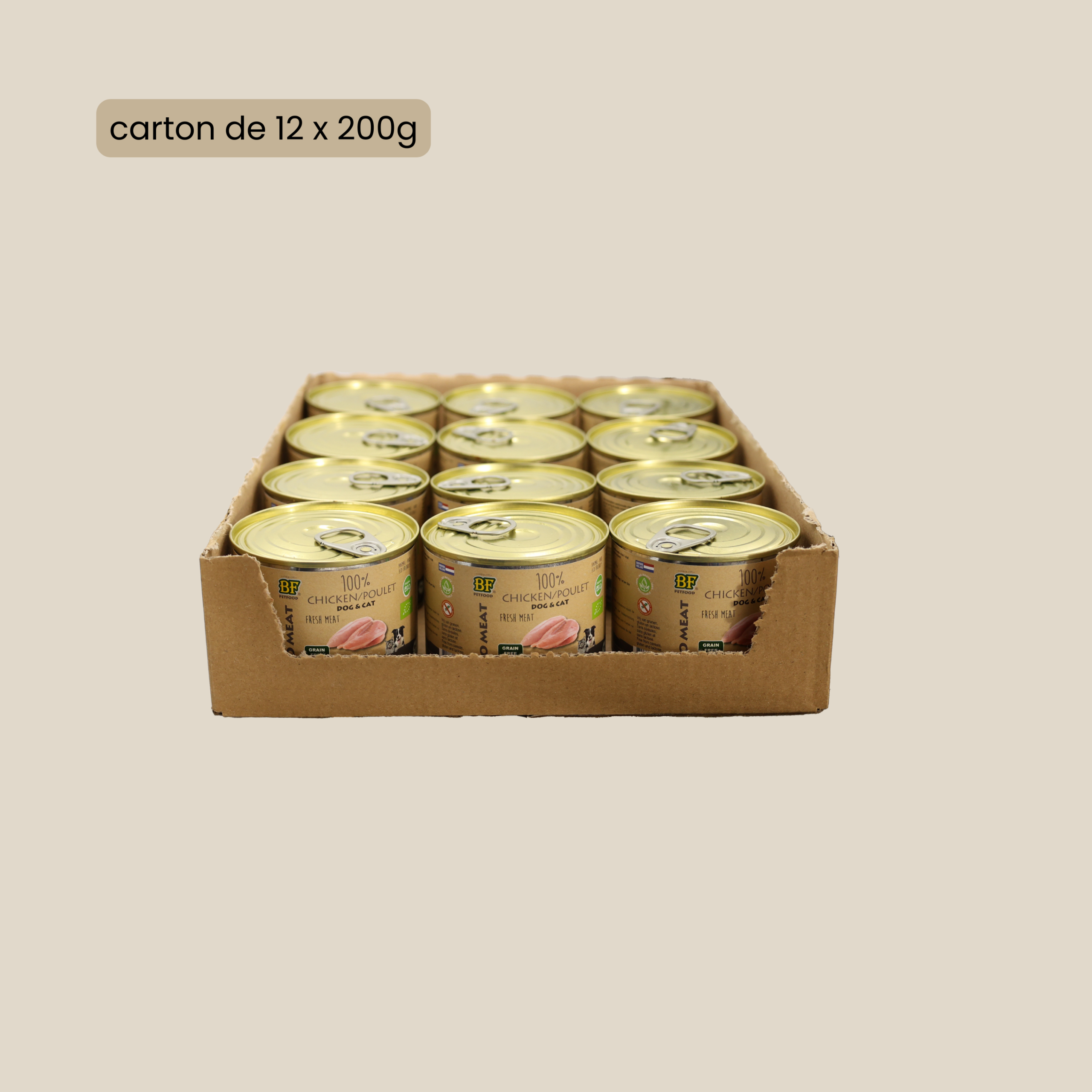 Choisissez le 100% poulet BIO de BF Petfood pour chat et chien